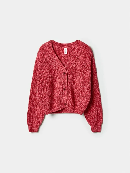 Выполненный из мягкого полиэстера, он очень приятен к телу и обеспечивает уют в течение всего дня. Яркий красный меланжевый оттенок легко сочетается с различными цветами и стилями, позволяя создавать множество модных комплектов. Благодаря свободному крою и удобным пуговицам, кардиган легко надевается и снимается, обеспечивая свободу движений для активных игр и повседневных занятий.
