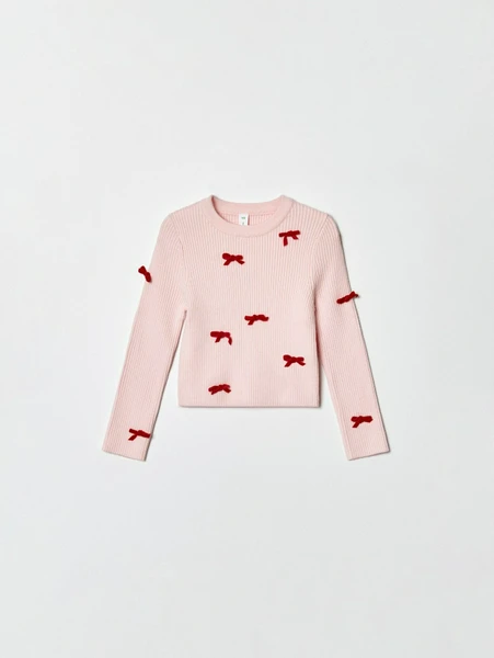 Джемперы, свитеры и кардиганыПредставляем нежный вязаный джемпер Sela для девочек — идеальное дополнение к гардеробу юной принцессы! 💖 Этот очаровательный джемпер в приятном нежно-розовом оттенке украшен милыми красными бантиками, которые придают ему особый, игривый вид. Он создан, чтобы дарить комфорт и тепло в демисезонный период, будь то весенняя прогулка или осенние школьные будни.