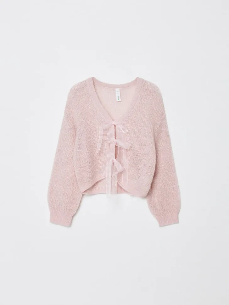 Вязаный кардиган из смесовой шерсти с бантиками, арт. 11941