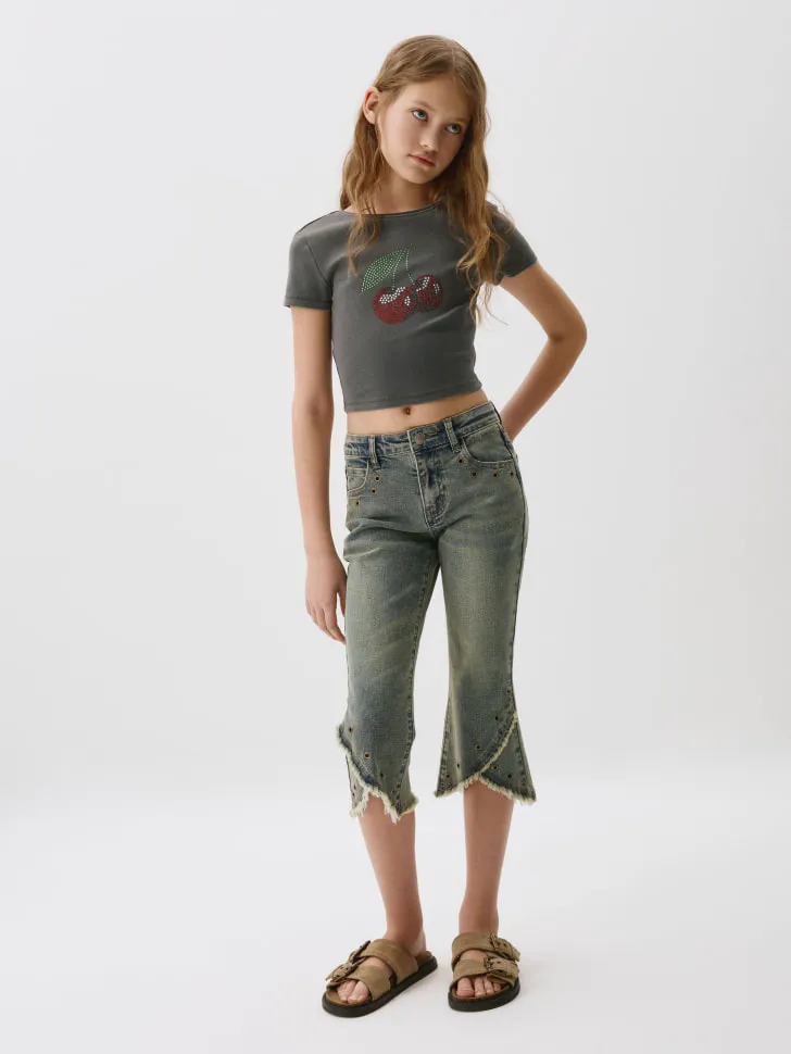 Джинсовые бриджи с люверсами для девочек, арт. 5209