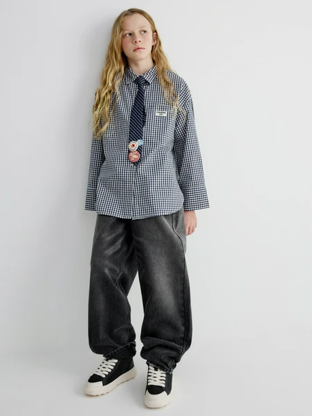 Глубокий темно-серый оттенок с легким эффектом потертости придает джинсам аутентичный винтажный вид, делая их универсальной основой для множества образов. Легко комбинируются с яркими толстовками, стильными рубашками или базовыми футболками. Эти джинсы — это не просто одежда, это выражение индивидуальности и свободы. Они станут любимым элементом гардероба вашей девочки, сочетая в себе прочность денима и модный дизайн от SELA.