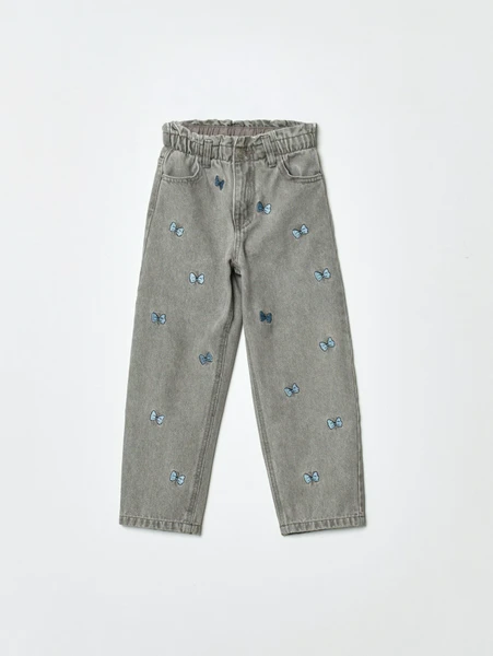 Джинсы Sela Paperbag fit с вышивкой Союзмультфильм для девочек, серый, арт. 36668