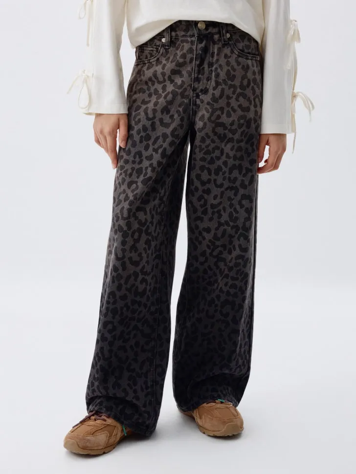 Джинсы WIDE LEG с леопардовым принтом для девочек, арт. 2693
