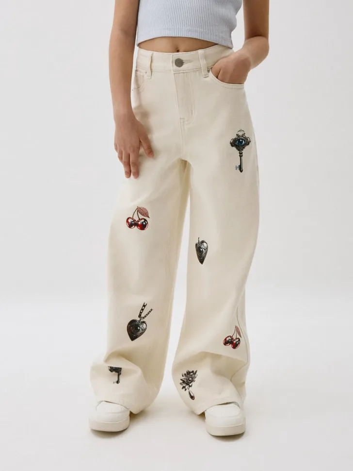 Джинсы Wide leg с принтом для девочек, арт. 11057