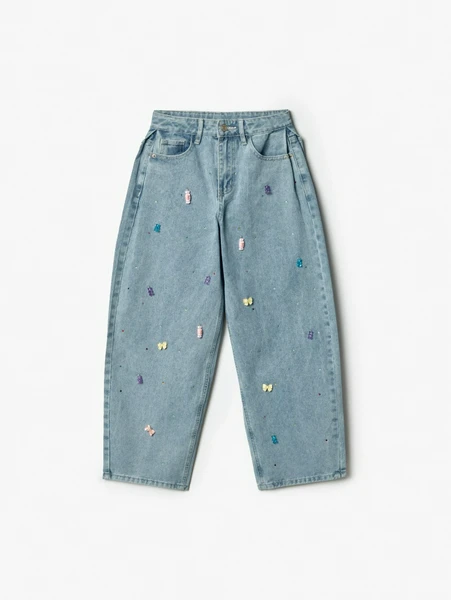 ДжинсыПредставляем абсолютный хит для юных модниц — объемные джинсы багги SELA с уникальным декором! Эти джинсы созданы для тех, кто ценит комфорт, свободу и яркий стиль. Выполненные из высококачественного денима в нежном голубом оттенке, они станут основой для множества креативных повседневных образов.