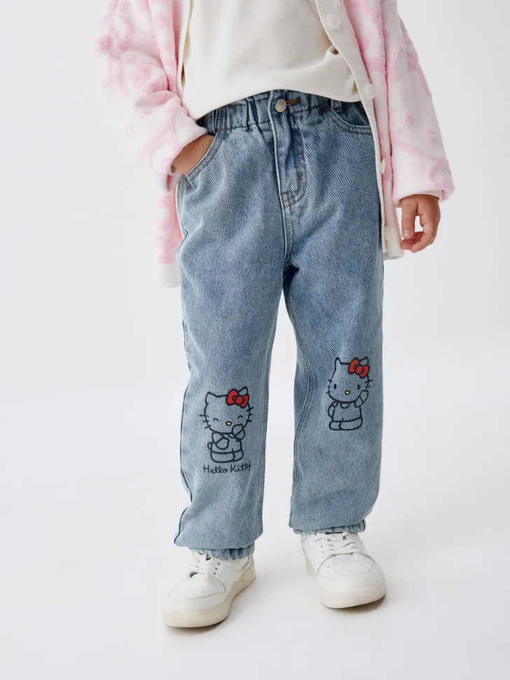 Представляем утепленные джинсы Paperbag fit с Hello Kitty – идеальный выбор для юных модниц, которые ценят комфорт и стиль даже в самые холодные дни! Эти джинсы созданы специально, чтобы обеспечить максимальное тепло и уют, не жертвуя при этом современным дизайном. Классический крой Paperbag с высокой талией и регулируемым поясом не только модно выглядит, но и гарантирует идеальную посадку, подчеркивая индивидуальность вашей девочки. Внутренний слой утепления обеспечивает надежную защиту от холода, делая их незаменимыми для зимних прогулок, школьных будней и активного отдыха.
