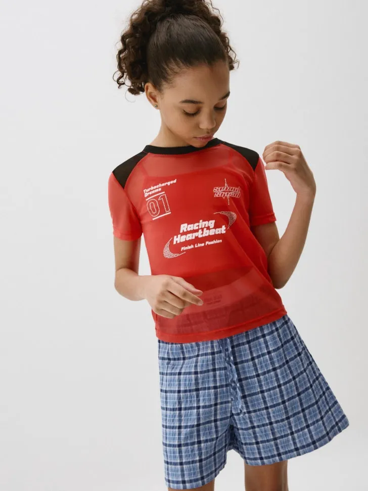 Футболка отличается современным спортивным кроем, который не стесняет движений, позволяя полностью сосредоточиться на занятиях спортом, танцами или играми на свежем воздухе. Однако ее универсальность не ограничивается только спортом! Благодаря трендовому дизайну с элементами сетки, она легко интегрируется в повседневный гардероб, создавая стильные и непринужденные образы. Комбинируйте ее с шортами, джинсами или юбками для создания уникального лука. Подарите вашей дочери не только одежду, но и возможность выразить свою индивидуальность, выбирая нашу футболку – символ активности, моды и безграничной энергии.