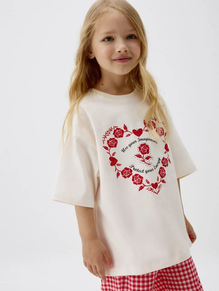 Футболка оверсайз с принтом для девочек, арт. 12193