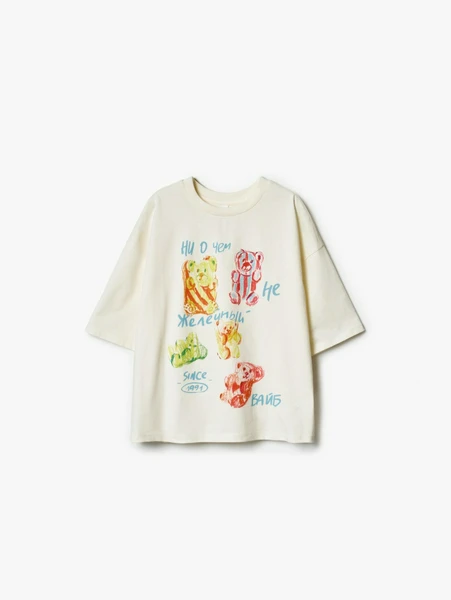 Футболка оверсайз с принтом для девочек Sela, белый, арт. 37019