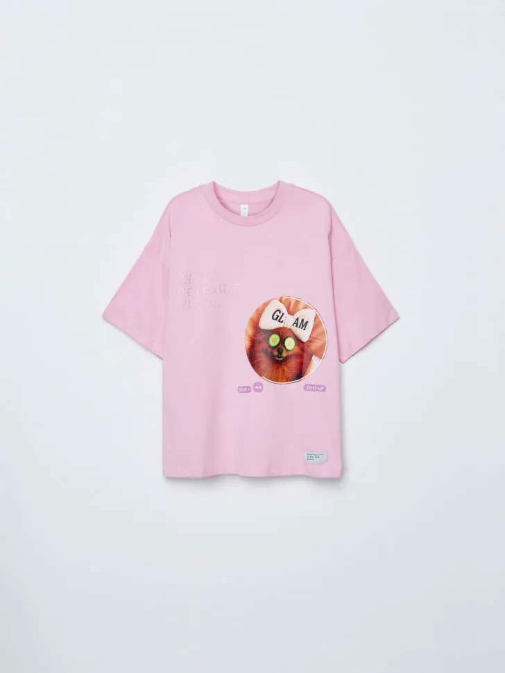Футболка оверсайз с принтом, розовый, арт. 15495