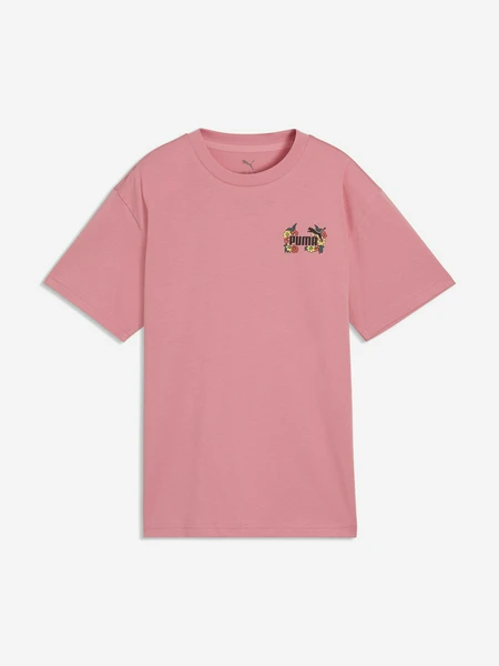 - Стильный дизайн: Футболка имеет прямой покрой и классический круглый вырез горловины, обеспечивая удобную посадку. Центральный принт с логотипом PUMA, окруженным яркими цветами, придаст образу игривости и уникальности.