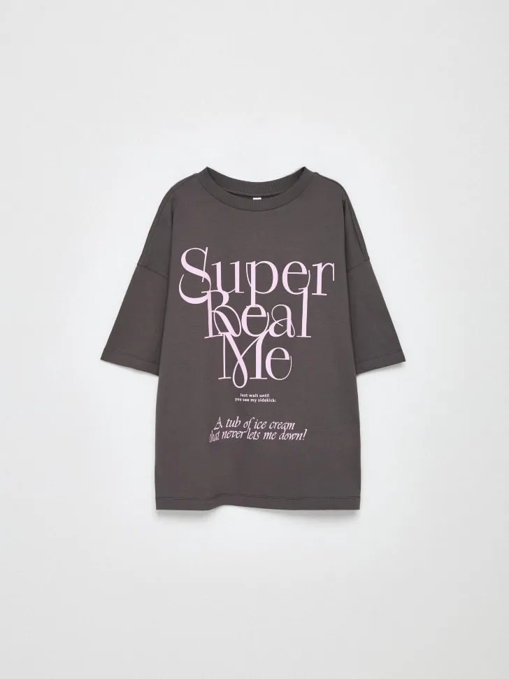 Футболки и топыПредставляем суперстильную футболку для девочек с ярким принтом «Super Real Me»! Эта модель станет идеальным дополнением к гардеробу вашей модницы. Изготовленная из мягкого, дышащего материала, она обеспечит комфорт на протяжении всего дня, будь то школьные занятия, прогулка с друзьями или активный отдых.