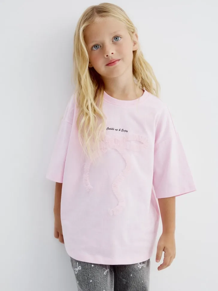 Свободный крой оверсайз обеспечивает полную свободу движений, а нежный розовый цвет и аккуратный принт (например, милый морской конек и надпись "Smile is a Feeling") придают изделию особое очарование. Эта футболка станет универсальной основой для создания множества повседневных образов. Сочетайте ее с джинсами, леггинсами, юбками или шортами, дополняйте любимыми аксессуарами и создавайте неповторимый стиль. Подарите вашей дочке не только красивую, но и очень удобную вещь, которая будет радовать ее каждый день!