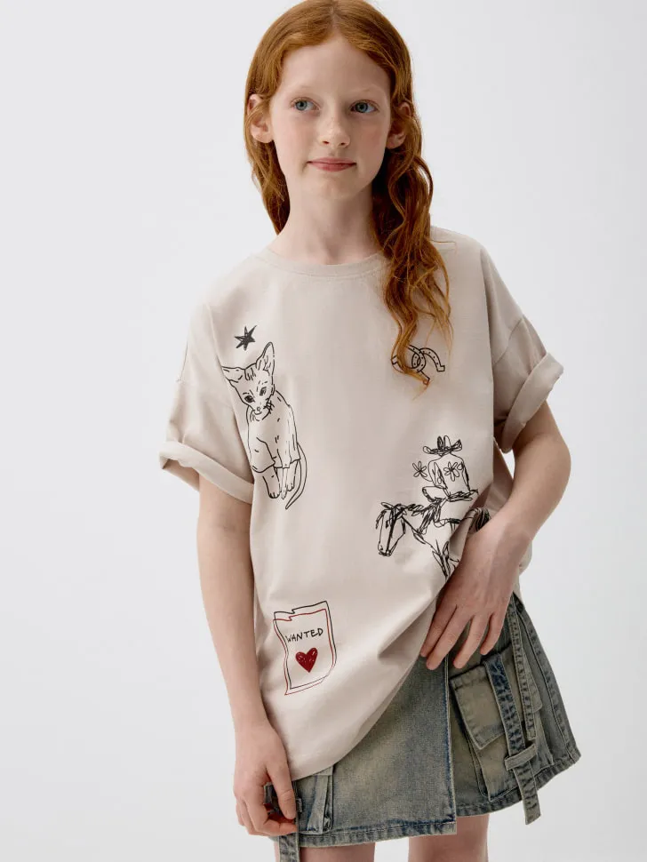 Представляем вашему вниманию стильную и удобную футболку с принтом, разработанную специально для юных модниц! Эта футболка станет идеальным дополнением к гардеробу вашей дочки, привнося в него яркие краски и индивидуальность. Мы использовали только высококачественные, гипоаллергенные материалы, чтобы обеспечить максимальный комфорт и безопасность для нежной детской кожи. Ткань приятна на ощупь, хорошо пропускает воздух и прекрасно держит форму даже после многократных стирок.
