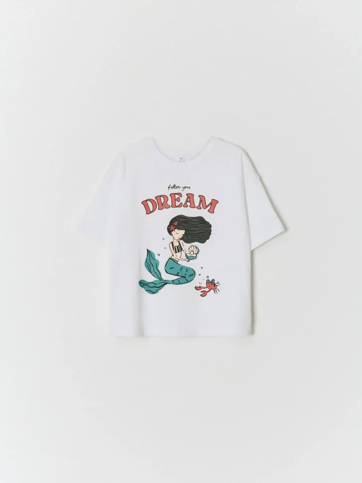 Яркий и детализированный принт на груди — это не просто рисунок, это целая история, которая позволит вашей дочке выразить свою индивидуальность и подчеркнуть свой характер. Стойкие к выцветанию краски гарантируют, что даже после многочисленных стирок футболка сохранит свой первоначальный вид и насыщенность цветов. Модель отлично сочетается с джинсами, леггинсами, юбками или шортами, создавая бесчисленное множество модных образов. Подарите своей принцессе не просто одежду, а возможность чувствовать себя особенной и стильной каждый день! Эта футболка станет незаменимой вещью в гардеробе, принося радость и комфорт.