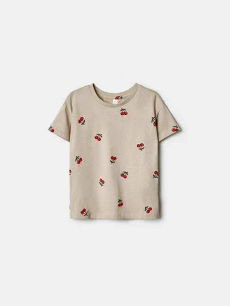 Представляем стильную и удобную футболку SELA для девочек, которая станет настоящим хитом летнего гардероба! ✨ Созданная из 100% высококачественного хлопка, эта модель обеспечивает максимальный комфорт и дышащие свойства, что особенно важно в теплую погоду. Нежный бежевый оттенок с очаровательным принтом в виде сочных вишен придаст образу легкости и игривости.
