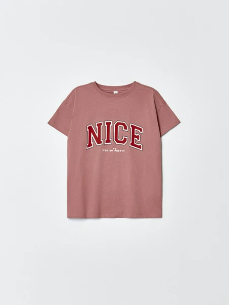 Изготовленная из высококачественного, приятного к телу материала, футболка обеспечивает максимальную воздухопроницаемость и комфорт в течение всего дня. Свободный крой не стесняет движений, что делает ее идеальной для активных игр, прогулок и занятий спортом. Главная изюминка модели — это стильный принт "NICE TO BE SO PRETTY", который подчеркивает индивидуальность и хорошее настроение.