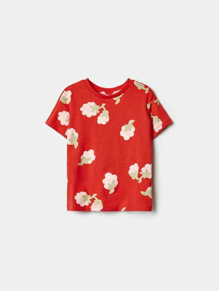Футболка выполнена из 100% натурального хлопка, что гарантирует максимальное удобство и гипоаллергенность. Материал прекрасно пропускает воздух, позволяя коже дышать даже в самые жаркие дни, и приятен на ощупь. Насыщенный красный цвет в сочетании с нежным цветочным принтом создает жизнерадостный и милый образ. Принт устойчив к выцветанию и сохраняет свою первозданную красоту после многократных стирок. Модель имеет классический крой, который не стесняет движений и идеально подходит для активных игр и повседневной носки. Эластичная горловина обеспечивает легкое надевание и снимание, а прочные швы гарантируют долговечность изделия. Эта футболка — идеальный выбор для детского сада, прогулок или встреч с подружками. Она легко комбинируется с шортами, джинсами или юбками, создавая разнообразные стильные комплекты. Подарите вашей девочке радость и комфорт с этой прекрасной футболкой от Sela!
