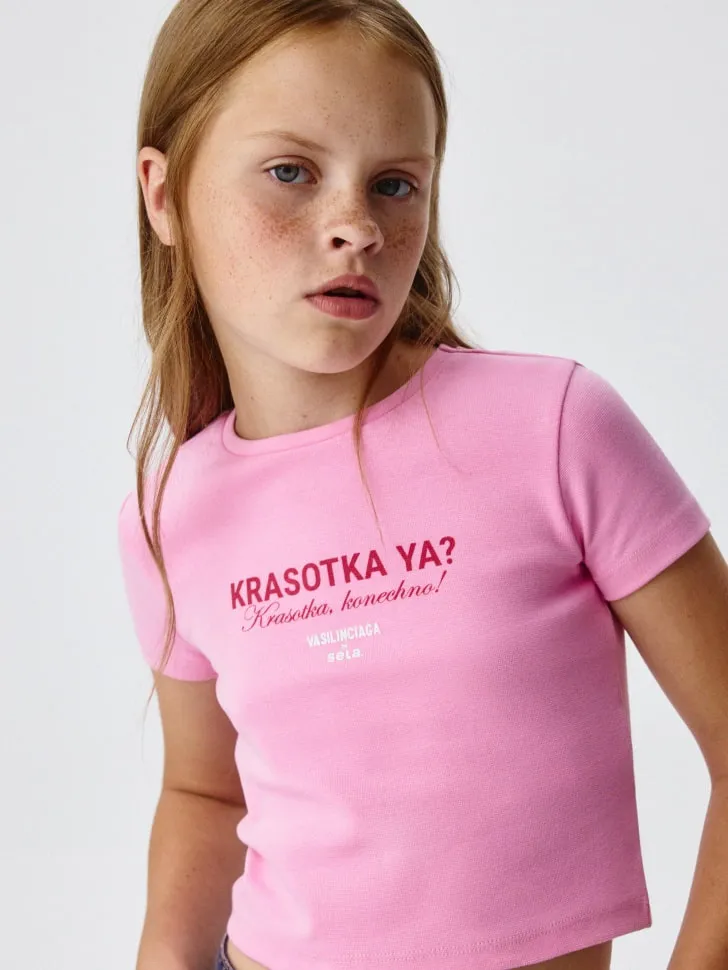 Откройте для себя неповторимый стиль с приталенной футболкой для девочек из эксклюзивной коллекции SELA х VASILINCIAGA! Эта уникальная модель создана для юных леди, которые стремятся выразить свою индивидуальность и быть в центре внимания. Футболка идеально подчеркивает фигуру, предлагая современный и элегантный силуэт, который легко впишется в любой гардероб.