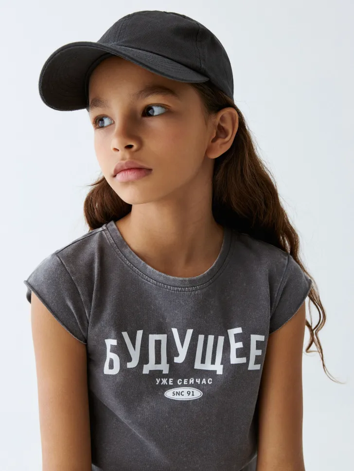 Укороченная футболка с принтом для девочек, арт. 12011