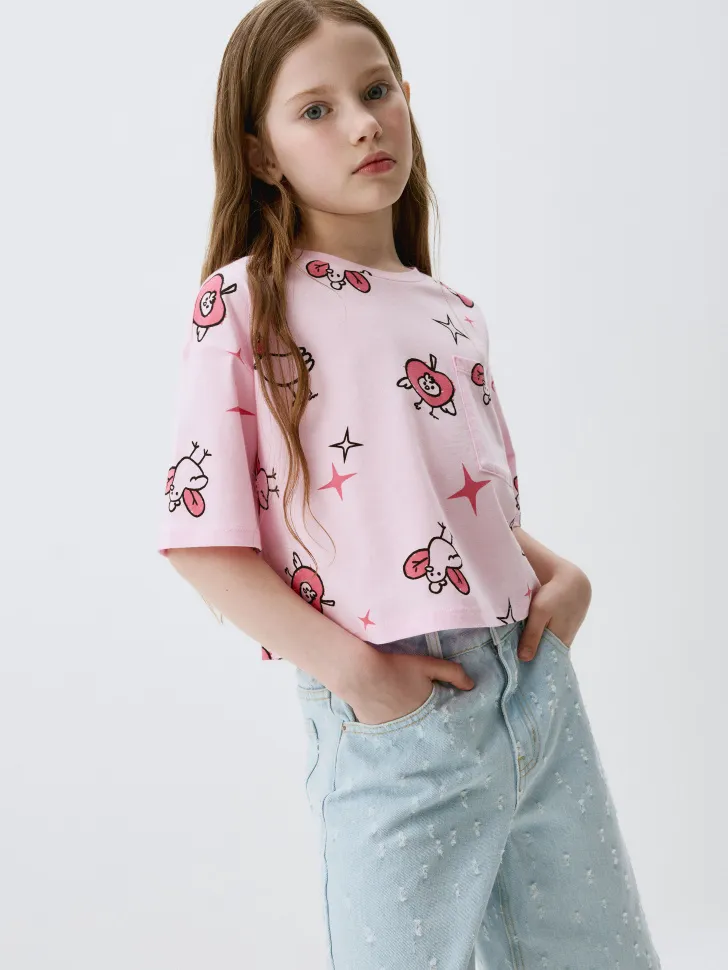 Особое внимание привлекает оригинальный и яркий принт, который выделит вашу девочку из толпы и подчеркнет ее индивидуальность. Этот дизайн разработан с учетом последних трендов детской моды, делая футболку идеальной для сочетания с джинсами, шортами или юбками с высокой посадкой. Создавайте бесконечное множество стильных образов для школы, прогулок с друзьями или семейных мероприятий. Подарите вашей дочери не только красивую, но и очень удобную вещь, которая станет любимой в ее гардеробе. Выбирайте качество и стиль – выбирайте нашу укороченную футболку с принтом!