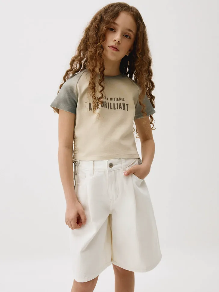 Добро пожаловать в мир стильной детской моды! Представляем вашему вниманию укороченную футболку с оригинальным принтом для девочек – настоящий must-have этого сезона. Эта модель идеально сочетает в себе последние модные тенденции и безупречный комфорт, делая её идеальным выбором для активных и энергичных юных леди. Свободный крой обеспечивает полную свободу движений, а высококачественная, дышащая ткань гарантирует приятные ощущения на протяжении всего дня, даже в самую теплую погоду.