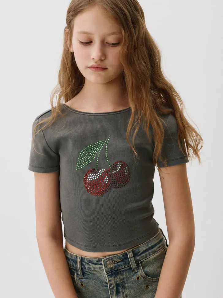 Укороченная футболка со стразами, арт. 3668