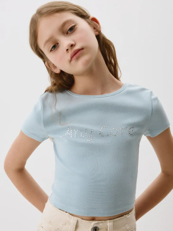 Укороченная футболка со стразами, арт. 4599