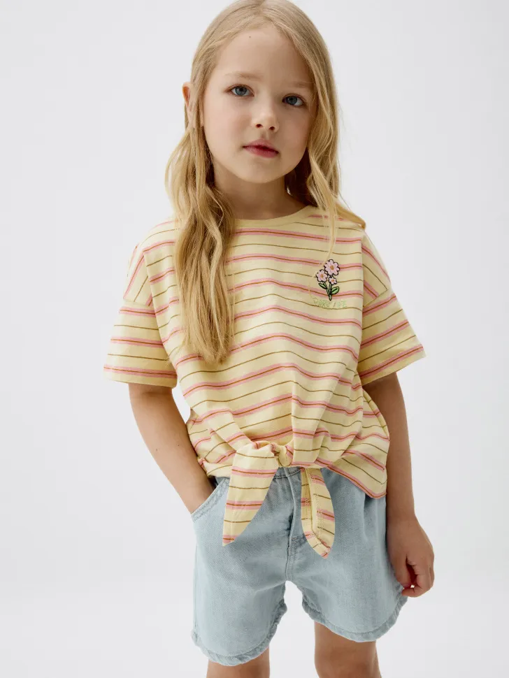 Представляем идеальную укороченную футболку в полоску для юных модниц! Этот стильный и удобный топ станет незаменимой частью летнего гардероба вашей девочки. Выполненная из мягкого, дышащего материала, она обеспечивает максимальный комфорт на весь день, будь то активные игры на свежем воздухе, прогулки с друзьями или просто отдых. Качество пошива гарантирует долговечность и сохранение первоначального вида даже после многочисленных стирок, радуя яркими красками.