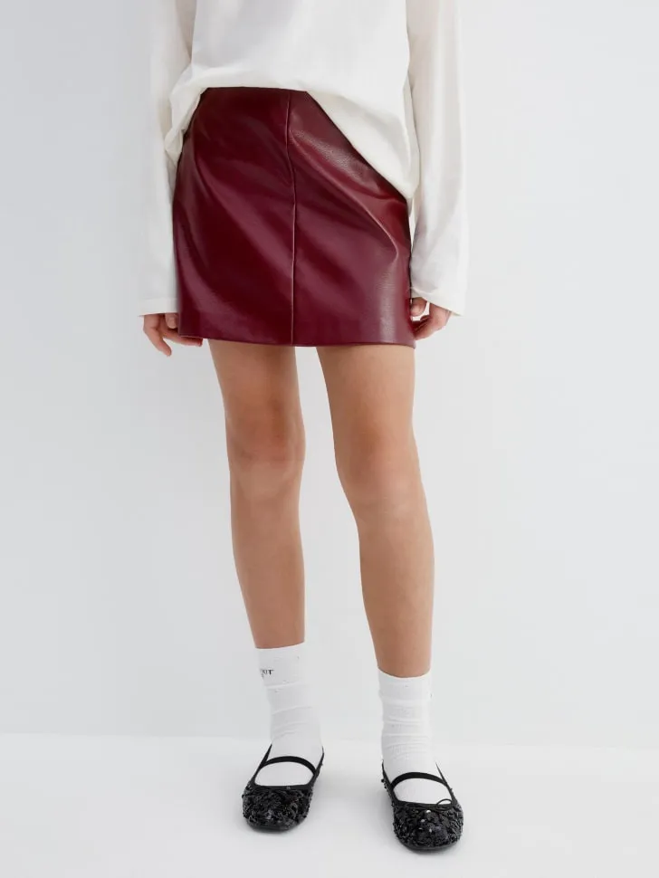 Юбка из лакированной искусственной кожи, бордовый, арт. n/a