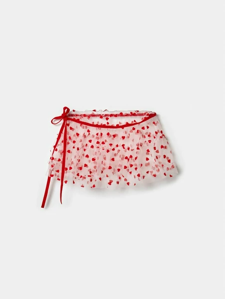 Созданная специально для маленьких модниц, эта воздушная юбка-пояс из легкой сетчатой синтетической ткани станет прекрасным дополнением к любому образу. Прозрачная основа, украшенная россыпью милых красных сердечек и изящным красным бантом, придаст наряду вашей дочки особый шарм.