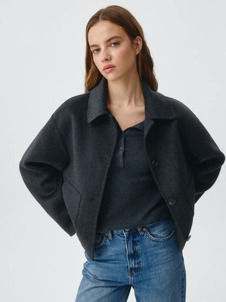Короткое полупальто из драпа с добавлением шерсти, арт. 5064