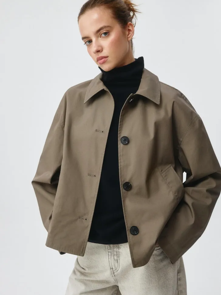 Представляем вашему вниманию идеальный укороченный плащ из хлопка – must-have этого сезона для каждой модницы! Этот плащ сочетает в себе элегантность классического кроя и комфорт натурального материала. Изготовленный из 100% высококачественного хлопка, он обеспечит вам невероятную легкость и дышащую структуру, что особенно ценно в демисезонную погоду.