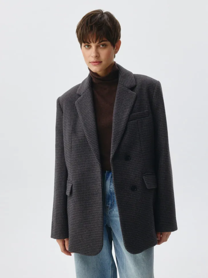 Откройте для себя идеальное сочетание стиля и комфорта с нашим новым жакетом из смесовой шерсти! Этот изысканный предмет гардероба создан для тех, кто ценит высокое качество и универсальность. Сочетание натуральной шерсти и современных волокон обеспечивает не только превосходное тепло, но и устойчивость к износу, а также легкость в уходе, делая его идеальным выбором для активного образа жизни.