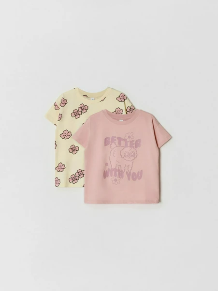 Первая футболка выполнена в приятном кремовом оттенке и украшена очаровательным принтом в виде розовых цветов. Она отлично сочетается с джинсами, юбками или шортами, придавая образу свежесть и легкость. Вторая футболка, нежно-розового цвета, выделяется оригинальным принтом с милым 🐶 и вдохновляющей надписью "BETTER WITH YOU", что обязательно понравится вашей девочке. Обе модели изготовлены из высококачественного, дышащего материала, который обеспечивает максимальный комфорт и долговечность.