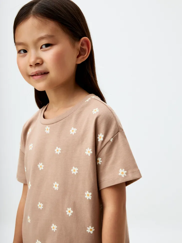 Представляем очаровательный набор из двух футболок для маленьких модниц, который станет незаменимой частью летнего гардероба! 🌸 Эти стильные и практичные футболки идеально подходят для повседневной носки, обеспечивая комфорт и свободу движений в течение всего дня. Выполненные из высококачественного, дышащего хлопка в нежном бежевом оттенке, они украшены милыми белыми цветочными узорами, которые добавляют образу легкости и свежести.