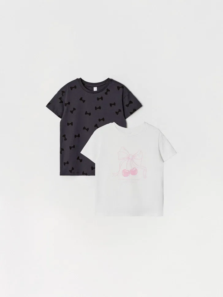 Набор из 2 футболок с принтом для девочек, арт. 12414