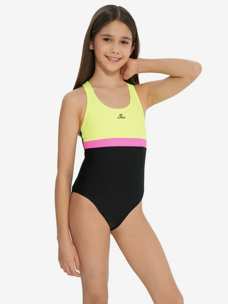 Купальники и пляжная одеждаПредставляем стильный и функциональный слитный купальник Joss, созданный специально для юных пловчих! Эта спортивная модель идеально подходит как для интенсивных тренировок в бассейне, так и для веселого и активного отдыха на пляже. Яркий и современный дизайн с контрастными неоново-желтым верхом, эффектной розовой вставкой и классическим черным низом гарантированно привлечет внимание и подчеркнет индивидуальность вашей девочки.