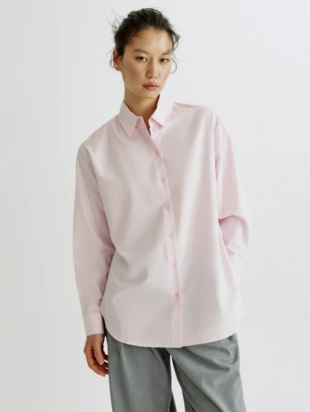 Изготовленная из премиального хлопка с добавлением вискозы, она обеспечивает непревзойденную мягкость и воздухопроницаемость. Ткань приятна к телу, не мнется и дарит ощущение легкости на протяжении всего дня. Нежно-розовый оттенок добавляет образу особую изысканность и позволяет легко комбинировать рубашку с различными элементами гардероба.