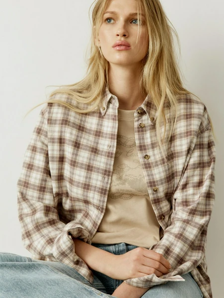 Выполненная из 100% натурального хлопка, рубашка обеспечивает невероятную мягкость и позволяет коже дышать, что делает ее идеальной для носки в любое время года. Модный бежево-коричневый клетчатый принт легко комбинируется с джинсами, брюками или юбками, добавляя нотку винтажного шарма вашему образу. Свободный силуэт не сковывает движений и дарит ощущение полного комфорта на протяжении всего дня.