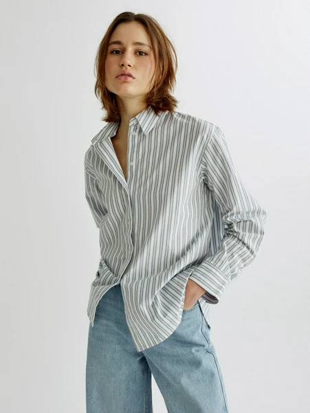 Классический крой оверсайз обеспечивает полную свободу движений и подходит для создания разнообразных образов — от повседневных до более элегантных. Тонкая полоска придает рубашке особый шарм, делая ее актуальной для офиса, прогулок или встреч с друзьями. Вы легко сможете комбинировать ее с джинсами, леггинсами или юбками.