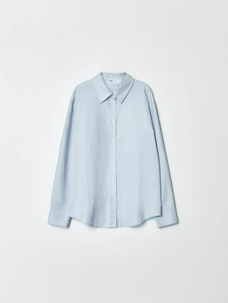 Откройте для себя идеальное сочетание стиля и комфорта с рубашкой свободного кроя от SELA! Эта универсальная модель станет незаменимой основой вашего гардероба, предлагая бесчисленные возможности для создания как повседневных, так и более формальных образов. Изготовленная из легкого и дышащего материала, она обеспечивает комфорт на протяжении всего дня, а ее нежный светло-голубой оттенок придает образу свежесть и легкость.