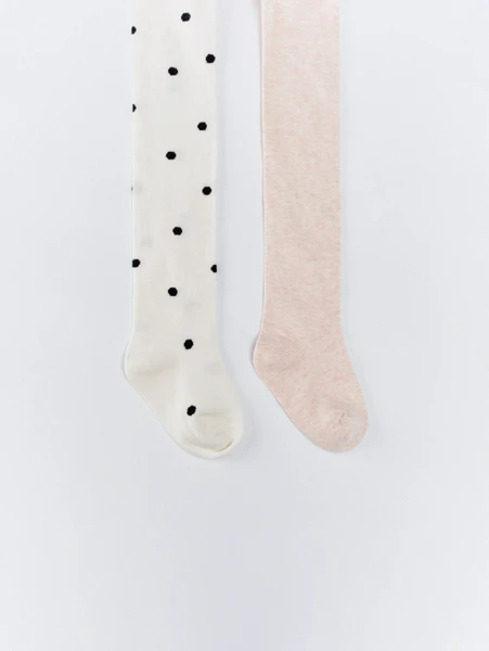 Носки и колготкиОчаровательный набор колготок для девочек от SELA – идеальное решение для стильных и комфортных образов вашей малышки! Этот комплект включает две пары, которые легко впишутся в любой гардероб. Первая пара — это нежные молочные колготки в классический черный горошек, добавляющие игривости и уникальности. Вторая пара — однотонные светло-бежевые колготки, универсальные и практичные для повседневной носки или особых случаев.