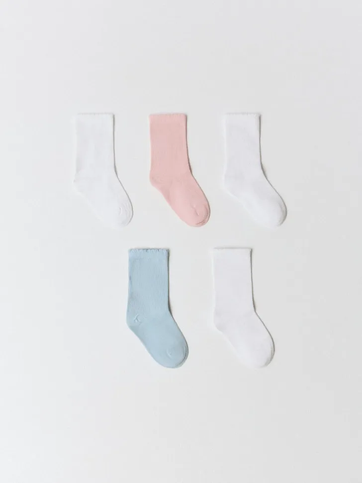 Откройте для вашей маленькой модницы мир комфорта и стиля с нашим великолепным набором из 5 пар носков для девочек! Этот уникальный комплект разработан с любовью и вниманием к каждой детали, чтобы обеспечить максимальный уют и радость вашей принцессе. Носки изготовлены из дышащих, гипоаллергенных материалов, которые идеально подходят для нежной детской кожи. Они обеспечивают оптимальную терморегуляцию, предотвращая перегрев и дискомфорт во время активных игр или длительных прогулок. Разнообразие ярких расцветок и милых узоров в каждом наборе позволит легко подобрать пару под любой наряд, от повседневного до праздничного, делая каждый день особенным.