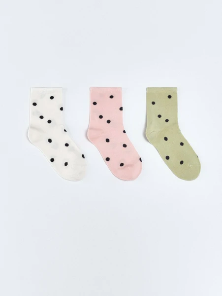 Представляем очаровательный набор детских носков Sela, созданный специально для юных модниц! Этот комплект включает три пары мягких и комфортных носочков, которые станут незаменимым дополнением к гардеробу вашей девочки. Каждый носочек украшен стильным принтом в горошек, добавляющим игривости и милого шарма.