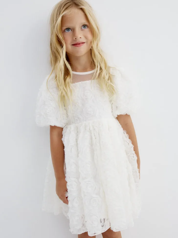 Платья и сарафаныВстречайте идеальное нарядное платье для вашей маленькой модницы! Это восхитительное белое платье с объемными цветами создано, чтобы каждая девочка почувствовала себя настоящей принцессой. Оно станет великолепным выбором для любого особенного события: будь то день рождения, новогодний утренник, выпускной в детском саду или важное семейное торжество. Нежный дизайн и утонченная отделка гарантируют, что все взгляды будут прикованы к вашей красавице!