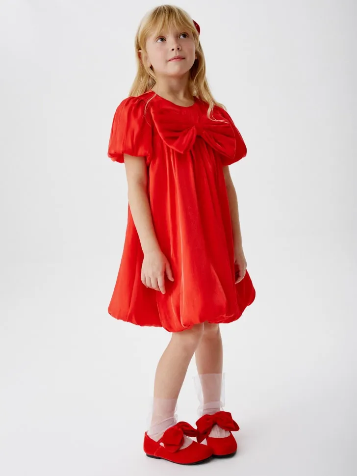 Модель выполнена из качественных, дышащих материалов, обеспечивающих максимальный комфорт даже при длительном ношении. Свободный крой не сковывает движений, позволяя активно проводить время. Изюминкой платья является большой, стильный бант, который придает наряду дополнительный объем и праздничный вид. Яркий красный цвет символизирует радость и энергию, делая вашу девочку центром внимания. Это платье — прекрасный выбор для создания праздничного настроения и незабываемых воспоминаний.