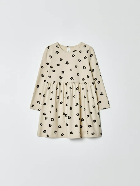 Дизайн платья выполнен в нежном молочном цвете, украшенном стильным черным принтом, который придает изделию игривый и современный вид. Свободный крой не сковывает движений, а длинные рукава делают платье подходящим для различных сезонов. Это универсальное платье легко комбинируется с леггинсами или колготками, а также с различными видами обуви. Подарите вашей дочке комфорт и уверенность с платьем SELA, которое подчеркнет её индивидуальность и добавит ярких красок в каждый день!