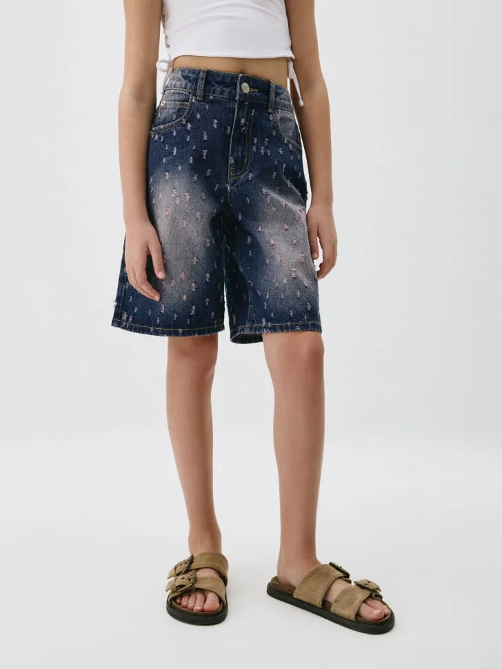 Джинсовые шорты-бермуды с потертостями, арт. 15075