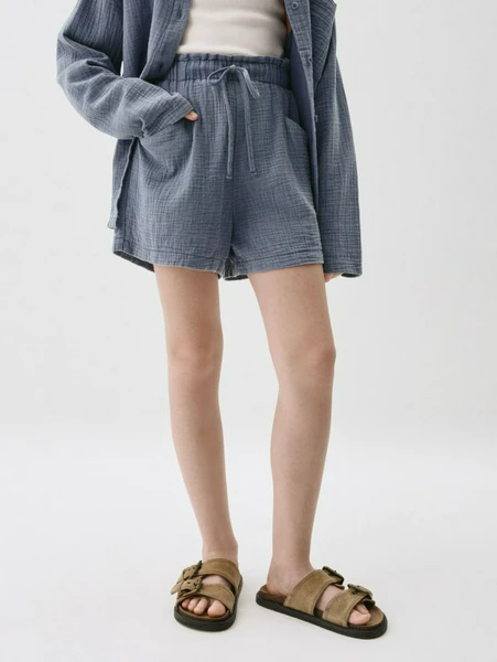 Короткие шорты из муслина для девочек, синий, арт. 34045